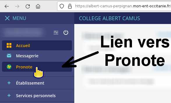 Accès à l'ENT, puis à Pronote
